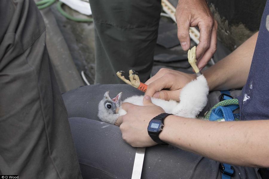 Peregrine - 2+ - 3 chicks ringed this morning ; Peregrine - 2 - adult pair in attendance
