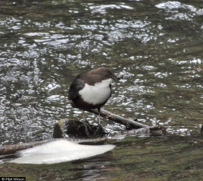 Dipper - 1 - Regularly visiting nest with food, on one occasion bird had to wait while rat swam past! ; Long-tailed Tit - 3 - 2 adults feeding 1 fledged juvenile