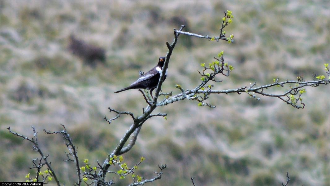 Ring Ouzel - 2 - One at south end one at north end, both males ; Meadow Pipit - 11+ ; Reed Bunting - 2 - Males ; Wheatear - 1 - Male ; Stonechat - 2 - Male & female ; Willow Warbler - 3