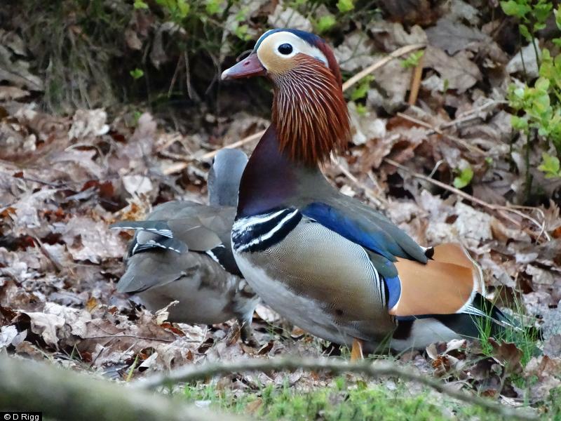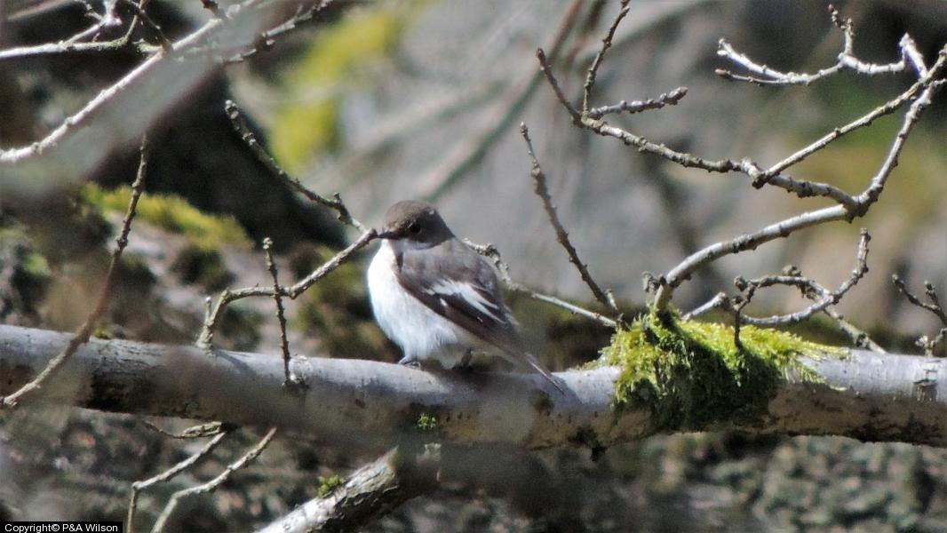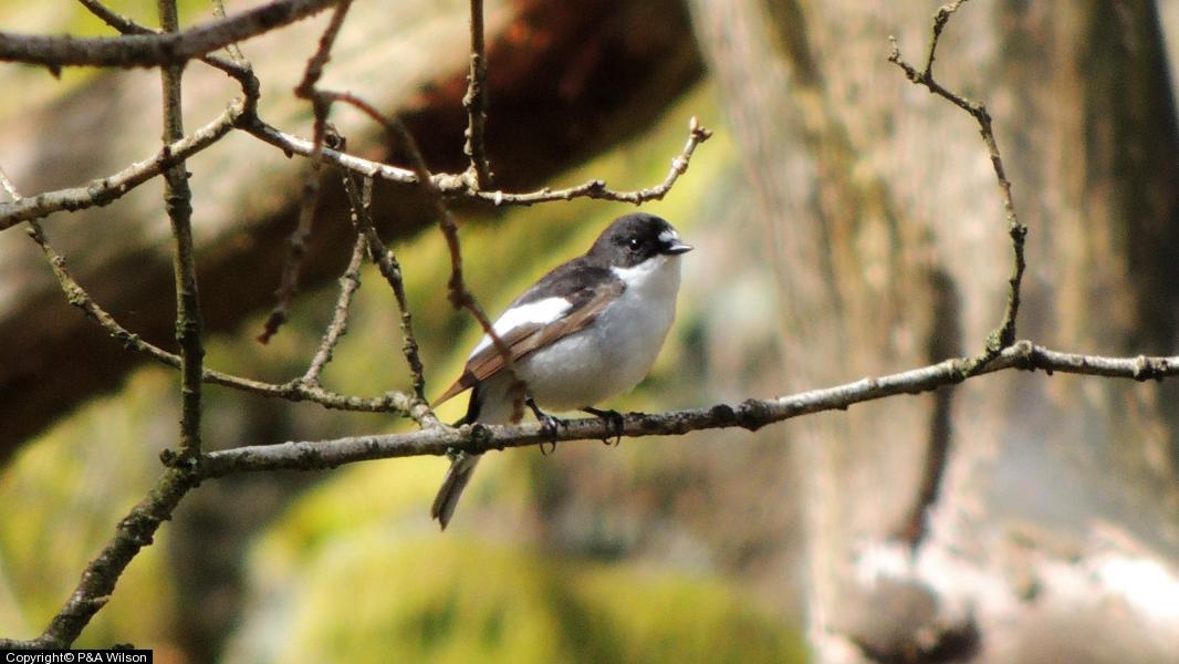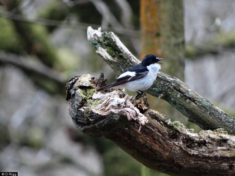 Mandarin - 2 - pair walking along path ; Pied Flycatcher - 4 - 3 singing m 1 f ; Woodcock - 1 ; Nuthatch - 2 ; Treecreeper - 2+ ; Sparrowhawk - 1 ; Jay - 2 ; Pied Flycatcher - 2 - Male & female visiting nest box with nesting material - Photo of male ; Pied Flycatcher - 2 - Female ; Cuckoo - 1 - Flew over calling ; Great Spotted Woodpecker - 1 - Female