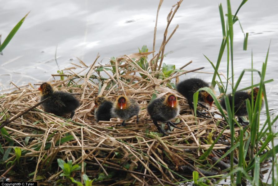 Coot - 8 - Pair with 6 chicks. ; Great Crested Grebe - 2 - Pair with nest.