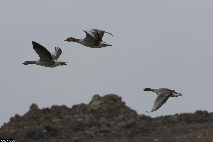 - 1 - left with Greylags ; Dunlin - 2 - summer plumaged ; Kestrel - 1 ; Lapwing - 8 - including several territorial birds over plains ; Ringed Plover - 4 ; Common Sandpiper - 4 ; Little Ringed Plover - 5 ; Curlew - 1 - over plains ; Wheatear - 3 ; Swift - 5 ; Oystercatcher - 2 - including sitting bird on island ; Skylark - 6 - singing