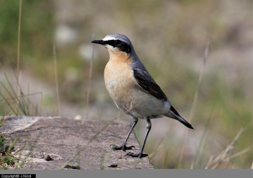 Curlew - 6 - 3 pairs ; Canada Goose - 6 - inc a pair with at least one young ; Mallard - 2 - males ; Reed Bunting - 2 - pairs in softrush ; Wheatear - 1 - showing characteristics of Greenland Wheatear ; Kestrel - 1 - male ; Meadow Pipit - 34 ; Skylark - 4
