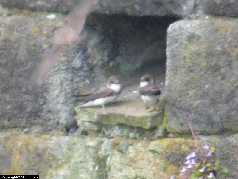 Sand Martin - 55-60 - 10+ behind Holiday Inn Express with nesting sites, 15+ Mill Weir Walk,30+ between Stevenson Rd and Newhall Road with nesting sites ; Sand Martin - 3 - pair at nesting site with would be intruder ; Sand Martin - 1 - with ring on right leg ; Sand Martin - 1 - collecting twigs from ground, ringed ; Swallow - 13 ; Grey Wagtail - 2 - pair harassed by m pied wagtail ; Blackcap - 4 - singing ; Mallard - 2+ - incl. 1 f + 6 chicks and 1 f + 9 chicks ; Moorhen - 2+ - incl pair with 3 chicks on nest near East Coast Rd Bridge