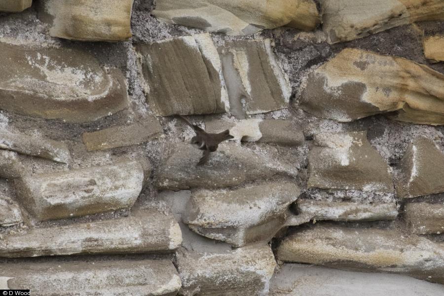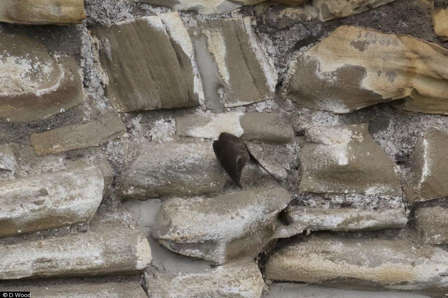 Sand Martin - 15 - including several birds scratching in vain at new concrete pointing between brickwork where previously nested; bird in photo attempting to squeeze into a tiny hole in the concrete ; Sand Martin - 15 - and now visible the hole it was trying to squeeze into after it gave up