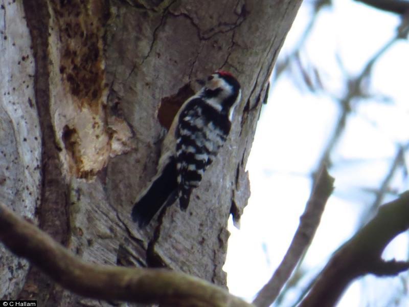 Bullfinch - 2 pairs on feeders ; Siskin - 2 pairs ; Blue Tit - pair - Carrying material into nesting box