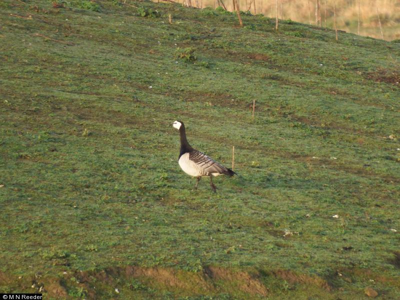 Mute Swan - 1 ; Coot - 14 ; Moorhen - 4 ; Grey Wagtail - 3 ; Greylag Goose - 3 ; Canada Goose - 6 - Plus Canada/Barnacle hybrid still ; Chiffchaff - 1 - singing ; Nuthatch - 2 ;