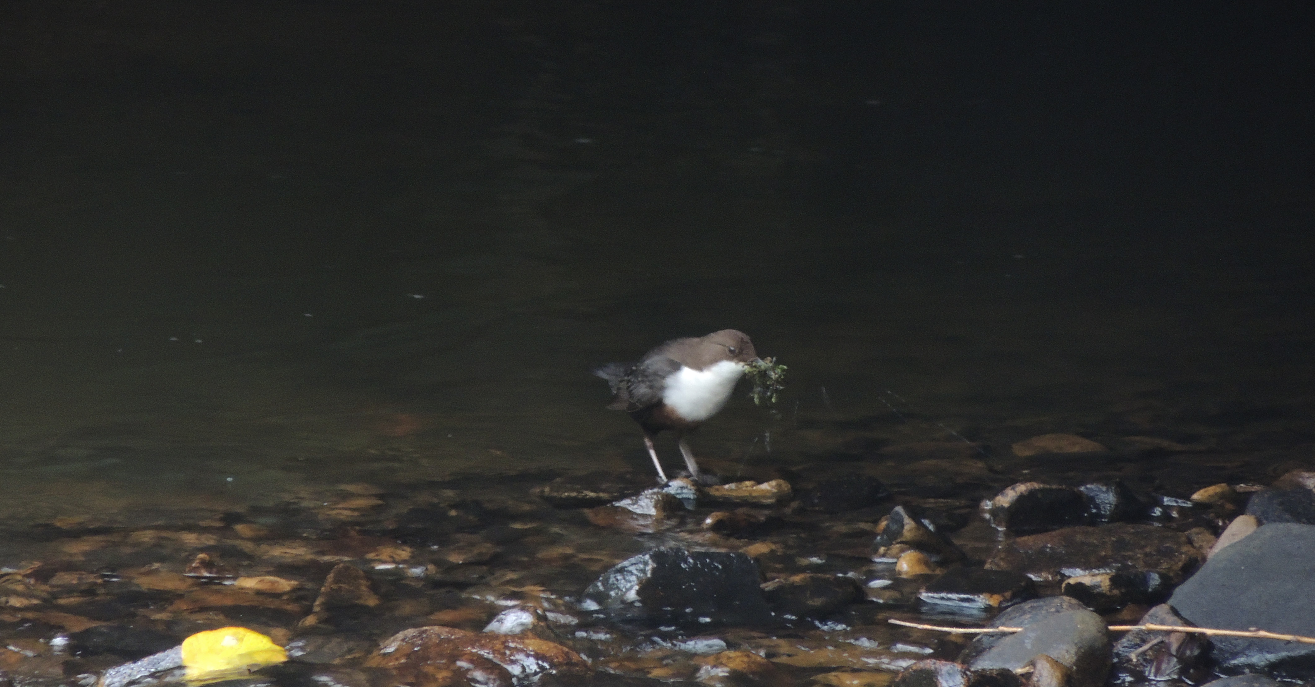 Grey Wagtail - 1 ; Dipper - 2 - Seen together, taking nesting material ; Dipper - 2