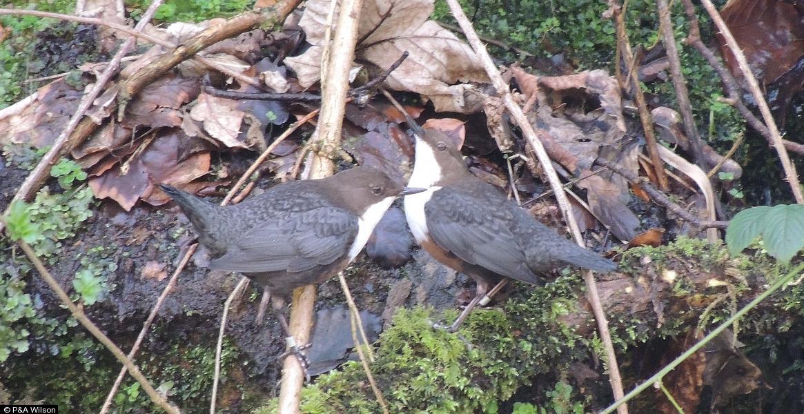 Dipper - 4 - All had silver rings on right legs, 2 seen together ; Treecreeper - 3 - 2 together ; Dipper - 4 ; Treecreeper - 3 - 2 together ; Grey Wagtail - 4+