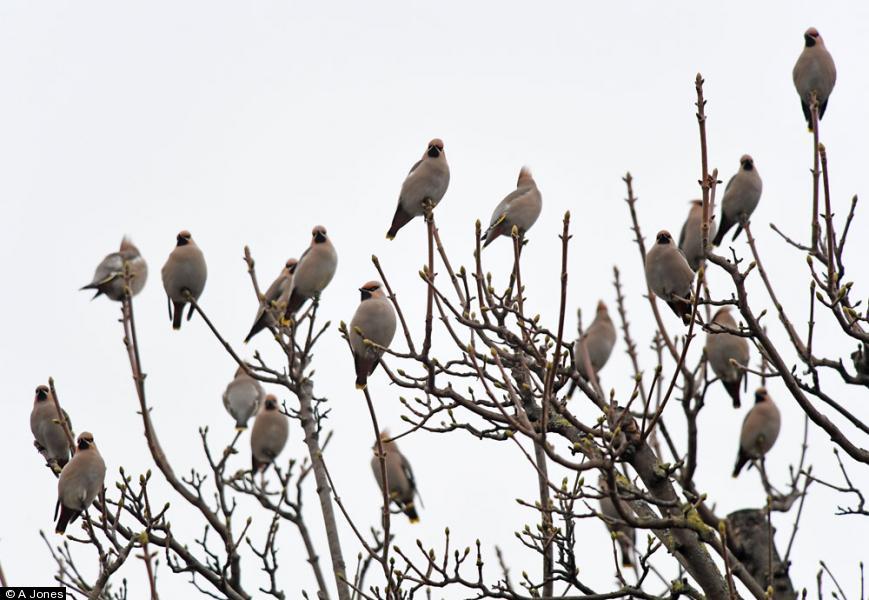 - 35 - 35 in top of garden's Sycamore at 17:00. Came down to have last feed on Cotoneaster before regrouping in Sycamore and then heading off to roost. ;