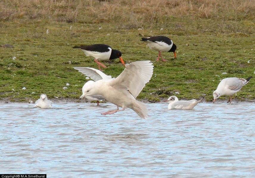 - 1 - second photo. ; Oystercatcher - 2 ; Redshank - 1 ; Goldeneye - 7 - 2 males ; Little Grebe - 1 ; Great Crested Grebe - 2