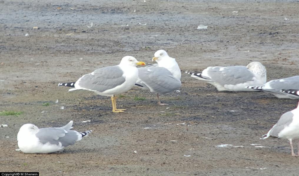 Black-headed Gull - 200 - on cleared area of new development adjacent to the M1 ; Common Gull - 2 ; Herring Gull - 310 ;