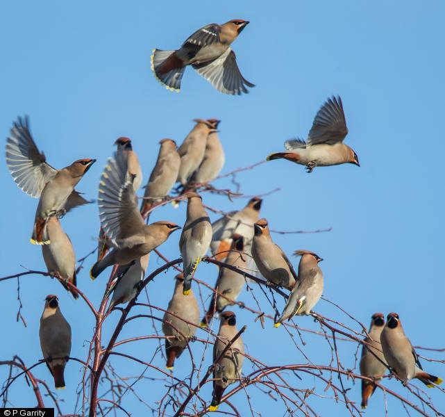- 70+ - between church and High Hazel Rd (still some berries around) Initially flew from by river bridge onto lagoons at 10.20. ;