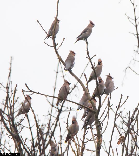 - 120 - 15:00 to 15:40. 120 in tall trees beside Haggler's Corner occasionally dropping down to feed on the few remaining Rowan berries