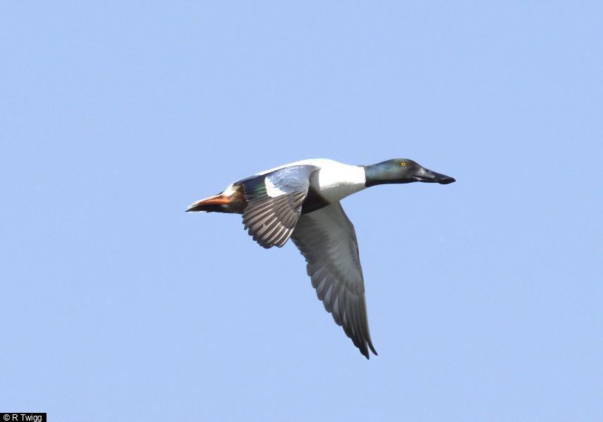 Gadwall - 5 ; Tufted Duck - 15 ; Shoveler - 2 pair ; Blackcap - 5 ; Chiffchaff - 4 ; Willow Warbler - 2 ; Whitethroat - 3 ; Lesser Whitethroat - 1 ; Yellow Wagtail - 2 ; Sand Martin - 8 ; Swallow - 3 ; House Martin - 2 ; Swift - 4 - First this year ; Carrion Crow - 53 - Feeding in East fields after muck spreading ; Jackdaw - 18 - In with crows ; Reed Bunting - 2