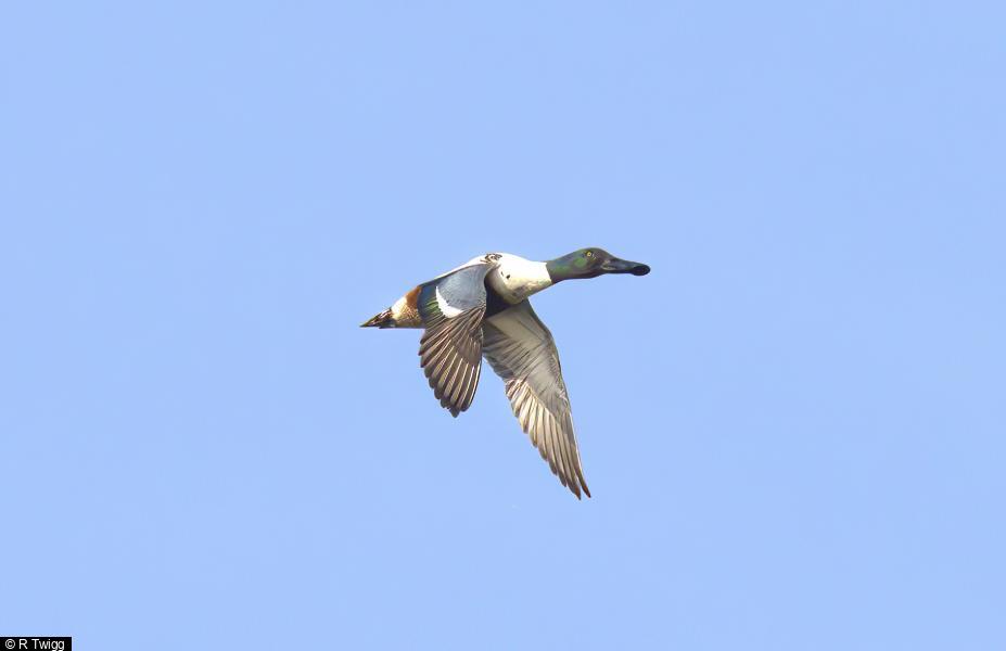 Shoveler - 2 - males ; Little Egret - 1 ; Ringed Plover - 2