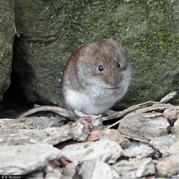Siskin - 2 - coming to sunflower hearts at feeders ; 324 - 2 - Bank Vole at roadside feeders