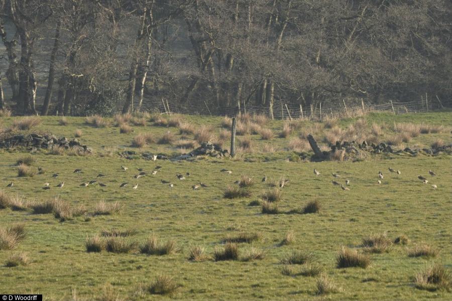 - 1 - with Greylags in fields to SW, different bird to Damflask so two in the area. ; Curlew - 27 - in fields to S ; Greylag Goose - 11