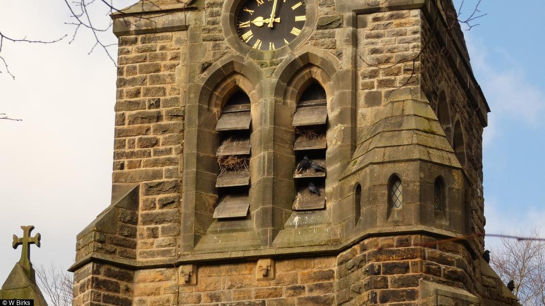 Jackdaw - 4+ - at nest site in the tower of Church of the Holy and Undivided Trinity