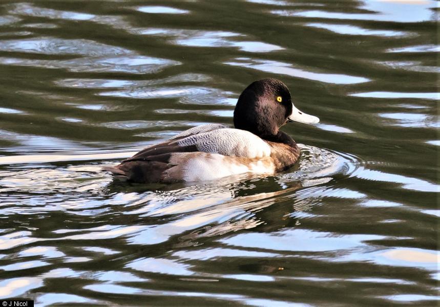 - 1 - male still present, feeding with group of Tufted Ducks. ;