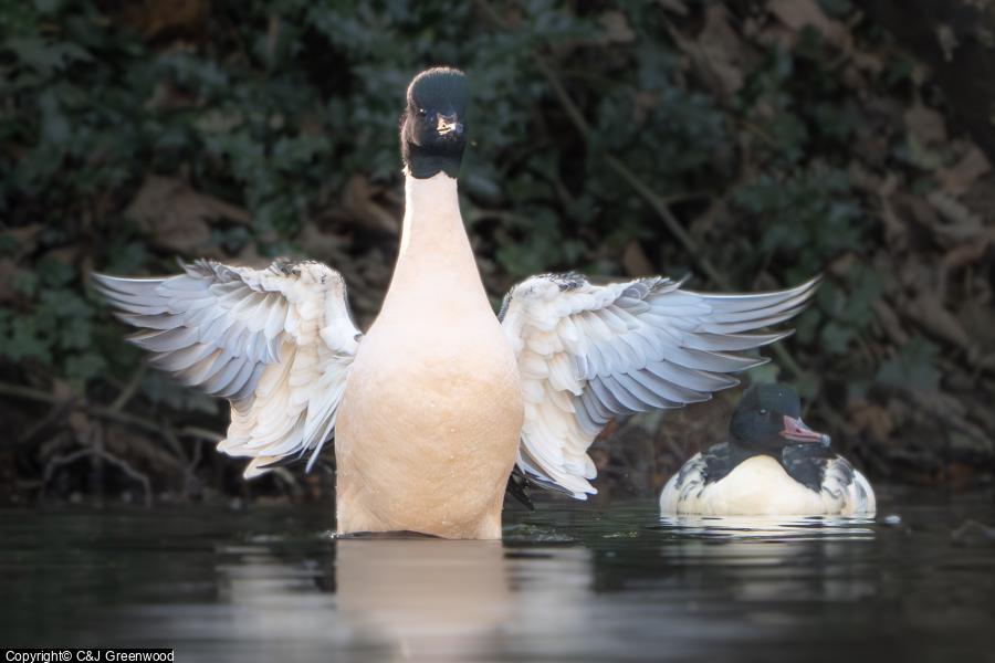 Goosander - 3 - 3 males ; Goosander - 3 - males ; Cormorant - 2 ; Cormorant - 2 - Another photo ; Ring-necked Parakeet - 6 ; Mandarin - 4 - 3m 1f ; Nuthatch - 3 ; Grey Heron - 1