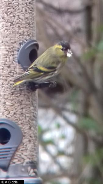 Jay - 1 ; Magpie - 3 ; Woodpigeon - 4 ; Collared Dove - 2 ; Blackbird - 5 - 3 male ; Robin - 2+ ; Goldcrest - 1 ; Dunnock - c7 ; House Sparrow - 20+ ; Goldfinch - 15 ; Bullfinch - 1 ; Long-tailed Tit - 2 ; Coal Tit - 1+ ; Great Tit - 5 ; Blue Tit - c7 - pair at nest box ; Starling - c9 ; Sparrowhawk - 1 - low thru gardens.