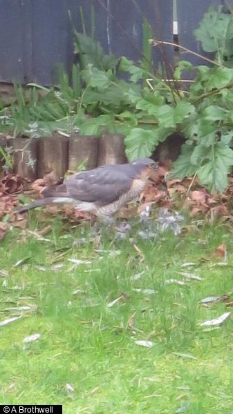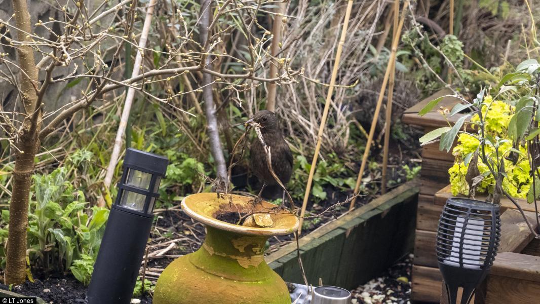 Blackbird - 2 - Female gathering nesting material . Norris road.