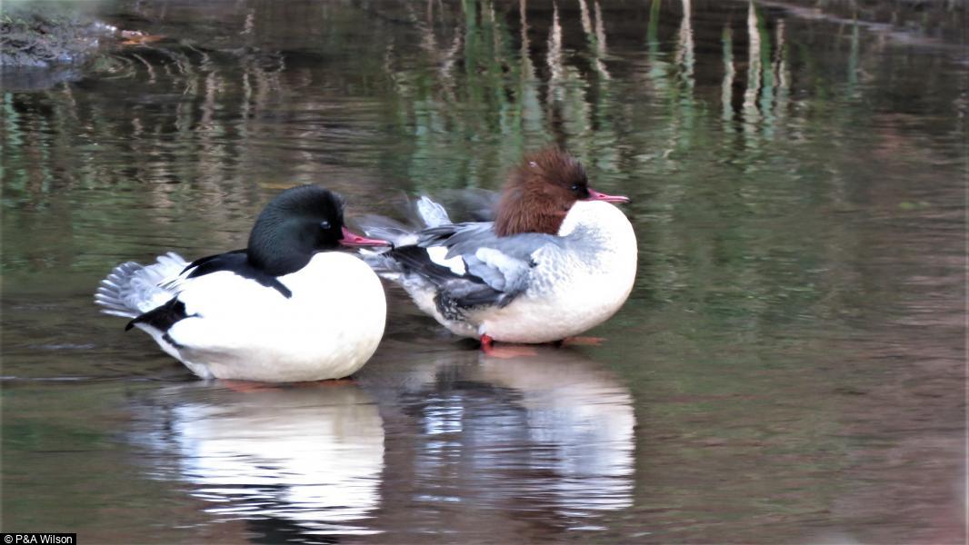 Coot - 1 ; Moorhen - 2 ; Goosander - 2 - Pair on main Res. Observers first Male and only second Female seen on site. ; Grey Heron - 1 ; Herring Gull - 1 - over. ; 319 - 1 ; Lesser Redpoll - 1 - Single calling. ; Jay - 1 ; Goldcrest - 1 - In newly laid hedge ; Song Thrush - 1 - Singing.