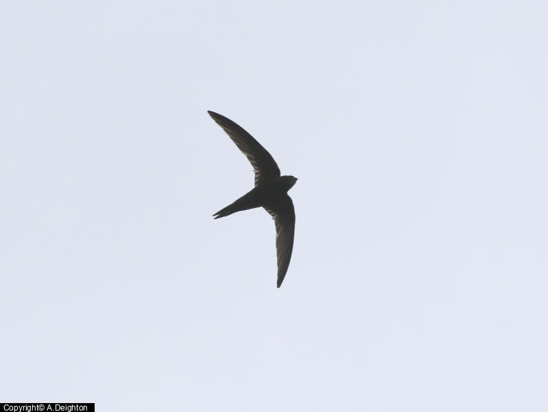 Swift - 1 - flying around over the cafe. Watched at close range (but in dull light) for several minutes, 12:15. ; Swift - 1 - Still present at 14:40 feeding over Rivelin Park Cafe/ Hollins Lane/Roscoe Bank area.