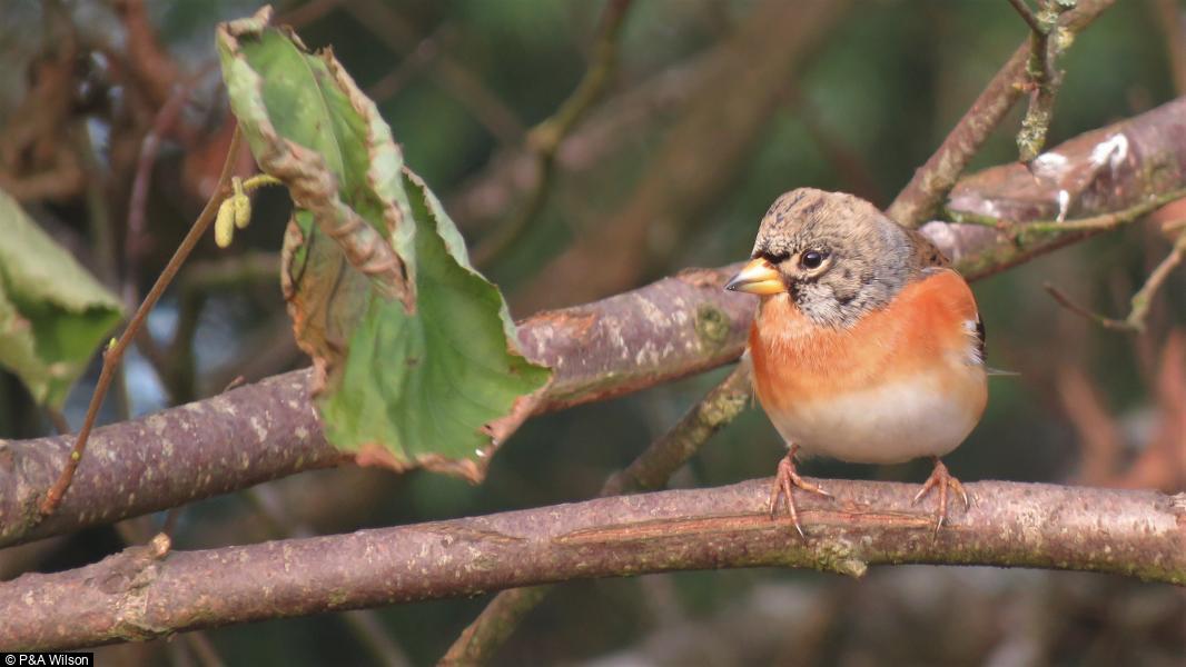Bullfinch - 2 - Pair in fruit trees ; Blackcap - 1 - male in tree pecking at dried plum ; Sparrowhawk - 1 - Single in birch tree