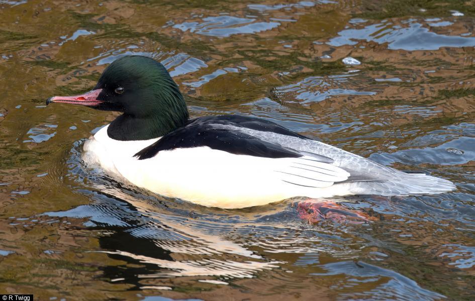 Herring Gull - 8 ; Black-headed Gull - c50 ; Common Gull - 1 ; Feral Pigeon - 211 - feeding on the food delivered about every 1/2 hour. ; Lesser Black-backed Gull - 1 - 2nd or 3rd winter ; Goosander - 4 - males