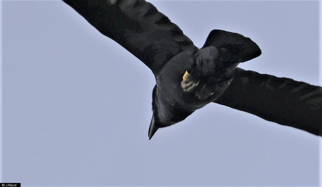 Raven - 4 - 2 pair displaying alongside M1. One bird clearly showing a leg ring. ; Raven - 4 - Second picture. ; Raven - 4 - Close up of leg ring.