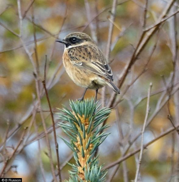 Shoveler - 1 ; Wigeon - 13 ; 320 - 19 ; Mallard - 9 ; Canada Goose - 47 ; Lapwing - 89 ; Lesser Black-backed Gull - 51 ; Black-headed Gull - 13 ; Stonechat - 2