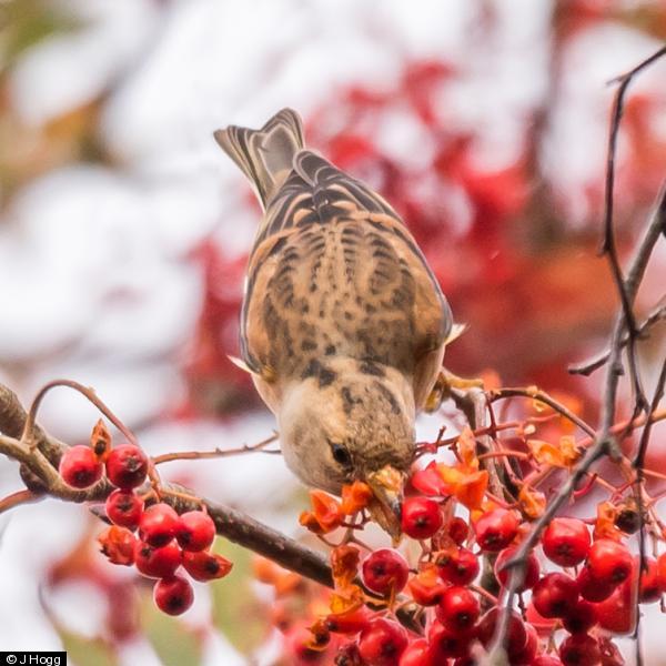 - 24 - flew west ; Crossbill - 5 - flew west ; Siskin - 27 - flew west ; Lesser Redpoll - 2 - flew west ; Fieldfare - 5 - flew west ; Woodpigeon - 2550 - flew south in 2 hrs ;