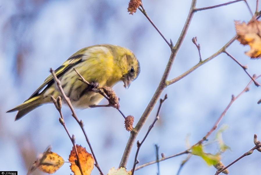 - 15 - Mixed group of brambling siskn and redpolll ; Siskin - 10 ; Lesser Redpoll - 5 ;