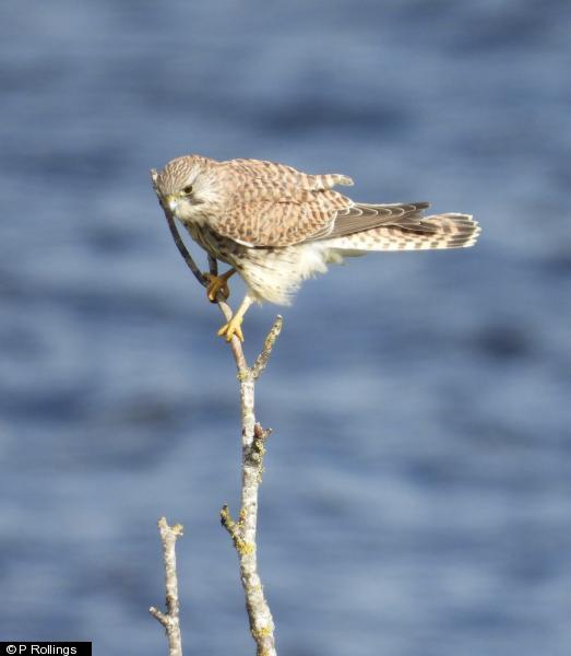 Kestrel - 1 - On spire early morning. ; Skylark - 6 - Along path over field to Arbour Lane.