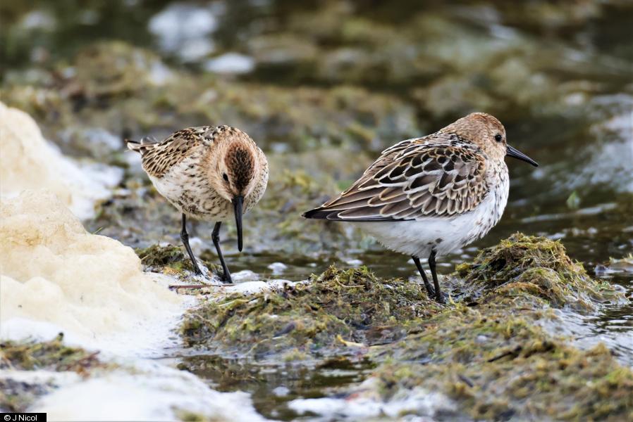 Dunlin - 2 - 2 birds feeding east side of main lake. ; Dunlin - 2 - second picture ; Pheasant - 1 - cock on rocks in river below weir. ; Hobby - 1 - Ad at 06:40 ; Dunlin - 4 - 2 down & 2 north