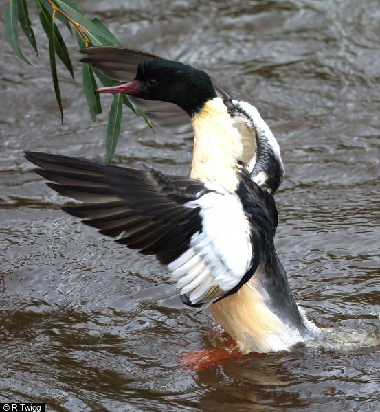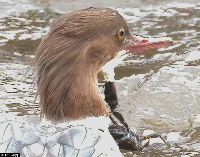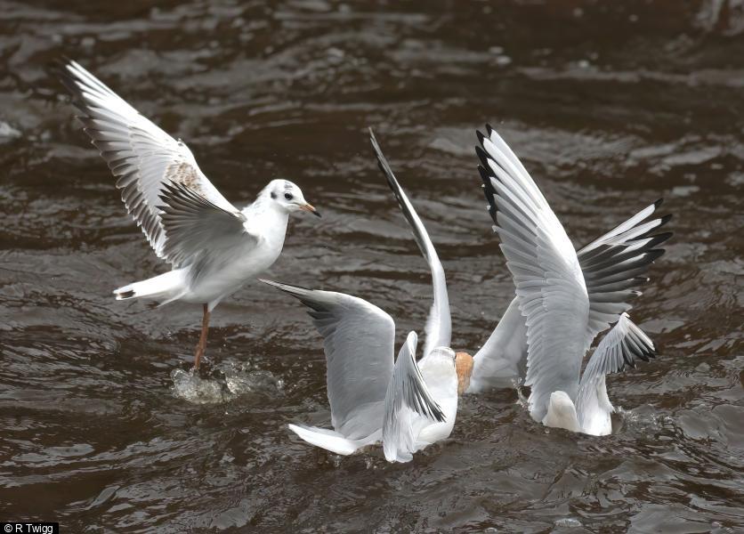 Goosander - 16 - Including one bird enjoying the crayfish's revenge. ; Goosander - 16 - The Crayfishes Revenge ; Feral Pigeon - 246 - Mainly sat on Wards roof and feeding on the western wall of the river. ; Mallard - 22 ; Black-headed Gull - 26 - 26 max but with lots of turnover. Mainly sat on Wards roof or feeding on the river.