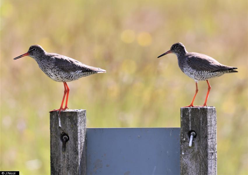 Sedge Warbler - 1 - calling from reeds on east side main lake. ; Little Egret - 1 - feeding around both lakes and island ; Little Egret - 1 - Second picture ; Redshank - 2 - noisy pair at the smaller lake.