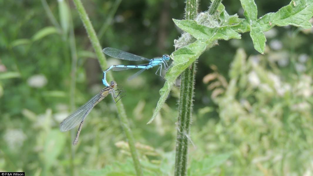 Song Thrush - 3 - Singing ; Great Spotted Woodpecker - 1 ; Whitethroat - 1 ; Long-tailed Tit - 2 ; Skylark - 7 - Singing ; Great Crested Grebe - 24 - 1 Juv ; Pochard - 23 ; Swallow - 1 ; Tufted Duck - 40+ ; Reed Bunting - 8 - Singing ; Black-headed Gull - 14 - 5 Juv ; House Martin - 6+ ; Sand Martin - 4 ; Greylag Goose - 7 ; Kestrel - 1 ; Lesser Black-backed Gull - 15 ; Redshank - 2 ; Lapwing - 3 ; Swift - 10+ ; Oystercatcher - 1 ; Pied Wagtail - 3 - 1 Juv ; Wigeon - 1 ; Little Grebe - 1 ; Willow Warbler - 1 ; Mallard - 18+ - 18 ducklings over 3 broods ; Canada Goose - 220+ - 15+ Juv ; Coot - 1+ - 1+ Juv ; Mute Swan - 10+ - 4 cygnets - juv Great Crested Grebe in foreground ; 324 - 1+ - Banded demoiselle ; 324 - 100+ - Common Blue Damselfly - mating