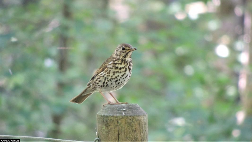 Blue Tit - 3 - 2 juveniles on fastball feeder being by parent. ; Robin - 1 - Juvenile on garden fence. ; Song Thrush - 1 - Foraging in garden - frightened off by male blackbird. ; 324 - 1 - Hedgehog - foraging in the garden in the day for the second day running. Appeared healthy