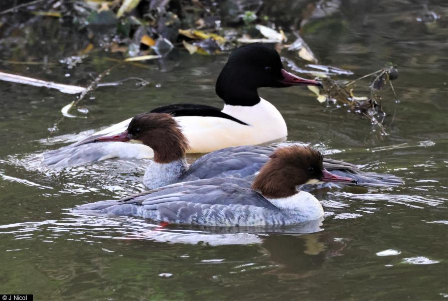 Goosander - 3 - Male and two female ; Dipper - 3 ; Mandarin - 49