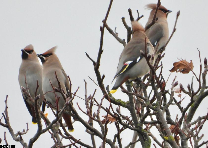 Mute Swan - 27 ; Tufted Duck - 56 ; Pochard - 13 ; 320 - 8 ; Mallard - C70 ; Goosander - 2 ; Gadwall - 2 ; Great Crested Grebe - 4 ; Little Grebe - 5 ; Pied Wagtail - 8+ ; Grey Wagtail - 1 ; Skylark - 4 ; Great Spotted Woodpecker - 2 ; Nuthatch - 1 ; Goldcrest - 1 ; Water Rail - 1 ; 319 - 1 ; Blue Tit - 10 ; Great Tit - 8 ; Long-tailed Tit - 13 ; Fieldfare - 35+ ;