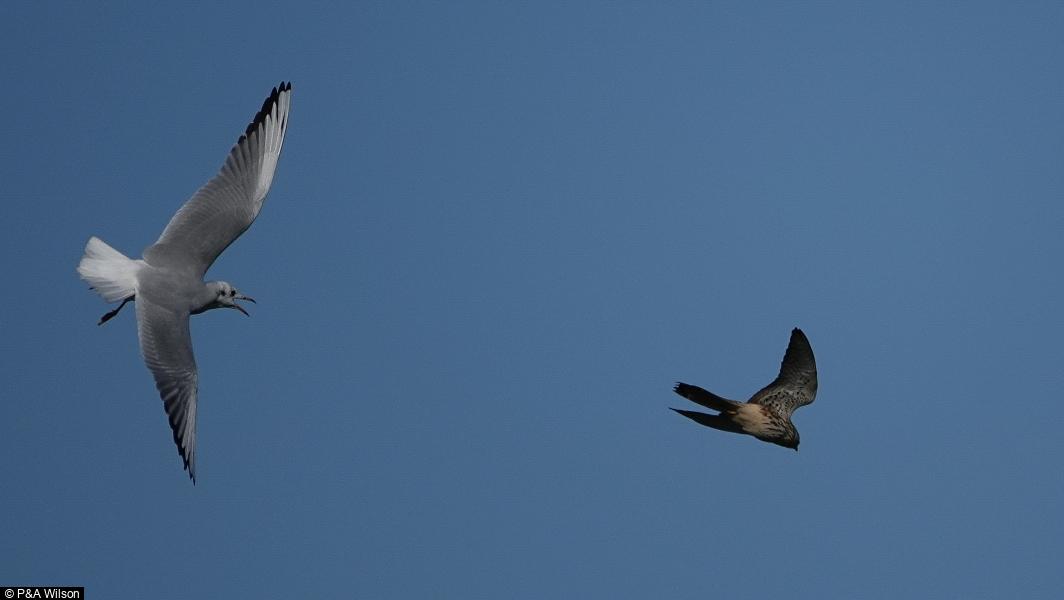 - 3 - On main lake ; Kestrel - 3 - Mobbed by Black-headed Gull ; Kestrel - 3 - Playing ; Little Grebe - 11 ; Pochard - 30 ; Black-headed Gull - 240
