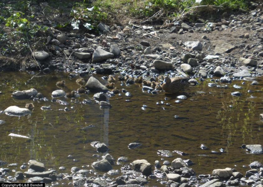 Mallard - 14 - Female with 14 young on shoals below weir.