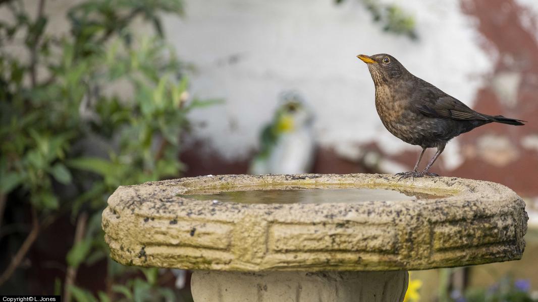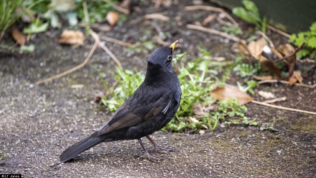 Blackbird - 2 - female started building nest 3 weeks ago..in garden..both male and female very aggressive towards magpies visiting garden in Norris road..female must be sitting on eggs... ; Blackbird - 2 - another photo