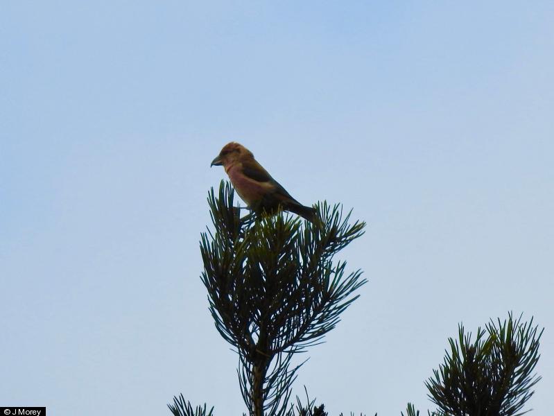 Crossbill - 15+ - Plenty calling in plantation, 7 birds seen well, including two posing and singing males. ; Crossbill - 15+ - Another photo ; Bullfinch - 2 - pair ; Mistle Thrush - 4 - small noisy flock ;