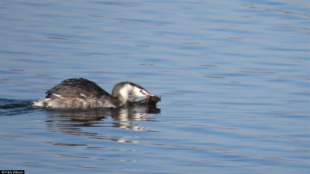 Black-headed Gull - 150+ ; Tufted Duck - 25+ ; Goldeneye - 4 ; Cormorant - 6 ; Skylark - 2+ - Singing ; Great Crested Grebe - 4 - 2 doing full mating display - synchronised head movement ; Great Crested Grebe - 4 - Bring gift ; Great Crested Grebe - 4 - The dance ; Great Crested Grebe - 4 - The dance pt2