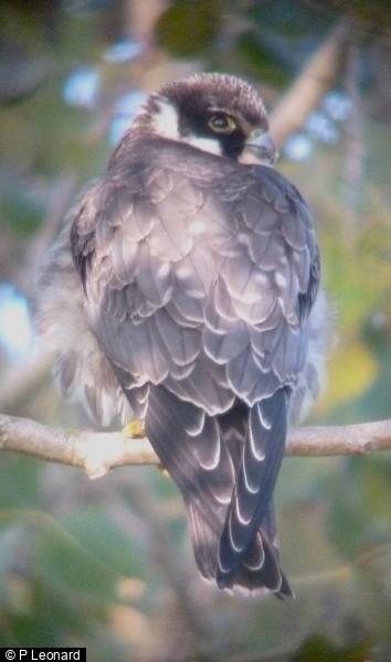 Great Spotted Woodpecker - 1 ; Chiffchaff - 5+ - 1 singing ; Goldcrest - 4+ ; Long-tailed Tit - 5+ ; Sparrowhawk - 1 - male, displaying overhead ; Siskin - 11 - 9 S; 2 W ; Swallow - 7 - all S ; Grey Wagtail - 3 - all S ; Meadow Pipit - 17+ - all S ; House Martin - 3 - over ; Hobby - 1 - juv, dropped into trees from N @ 0755hrs where it sat preening in sunshine to 0905hrs; left E, climbing high over Liberty Steels hunting insects and drifting S/SE