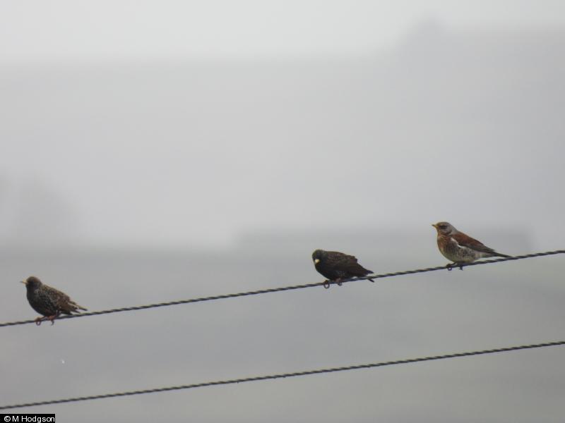 Fieldfare - c10 - with Starlings ; Starling - c45 - with Fieldfares ; Greylag Goose - 80 - 78 + 2 in neighbouring fields, but no White-front ; Pied Wagtail - 1